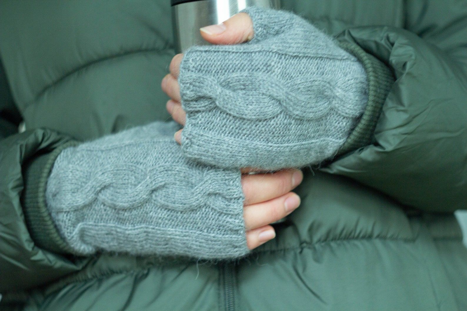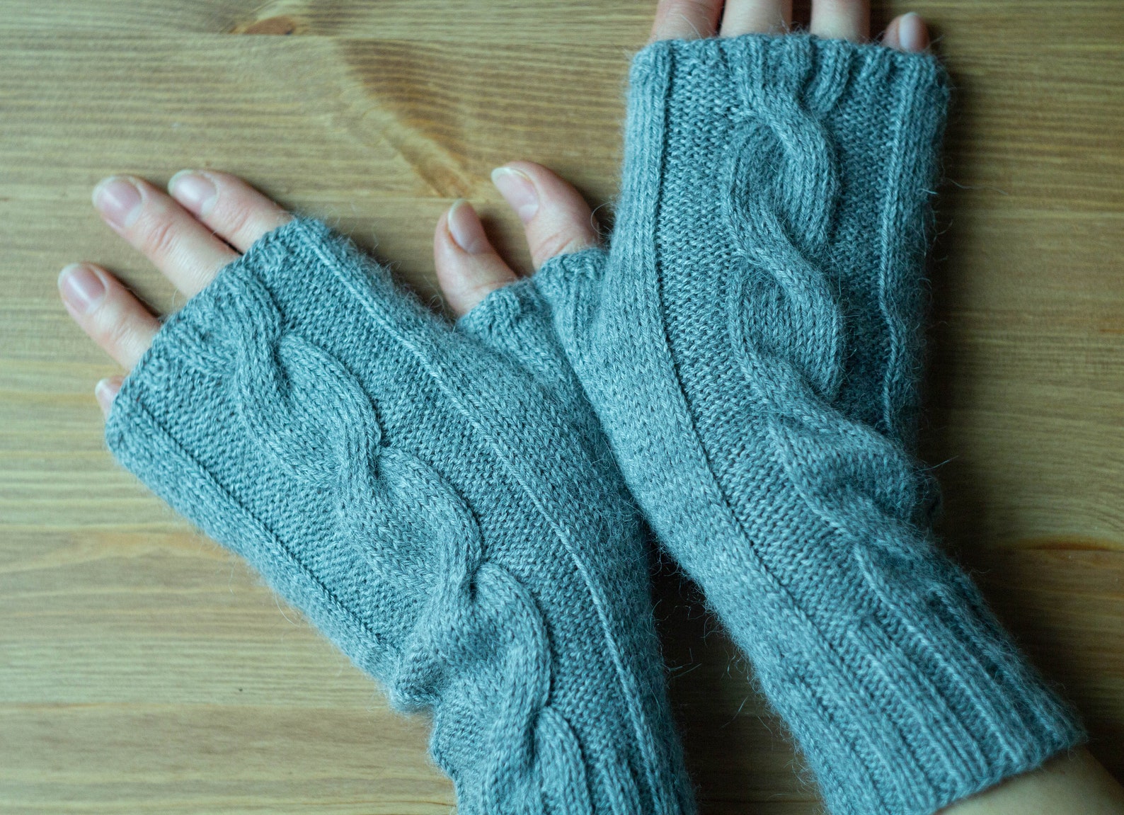 These fingerless gloves are very warm and comfy. Easy to knit so anyone can make these.